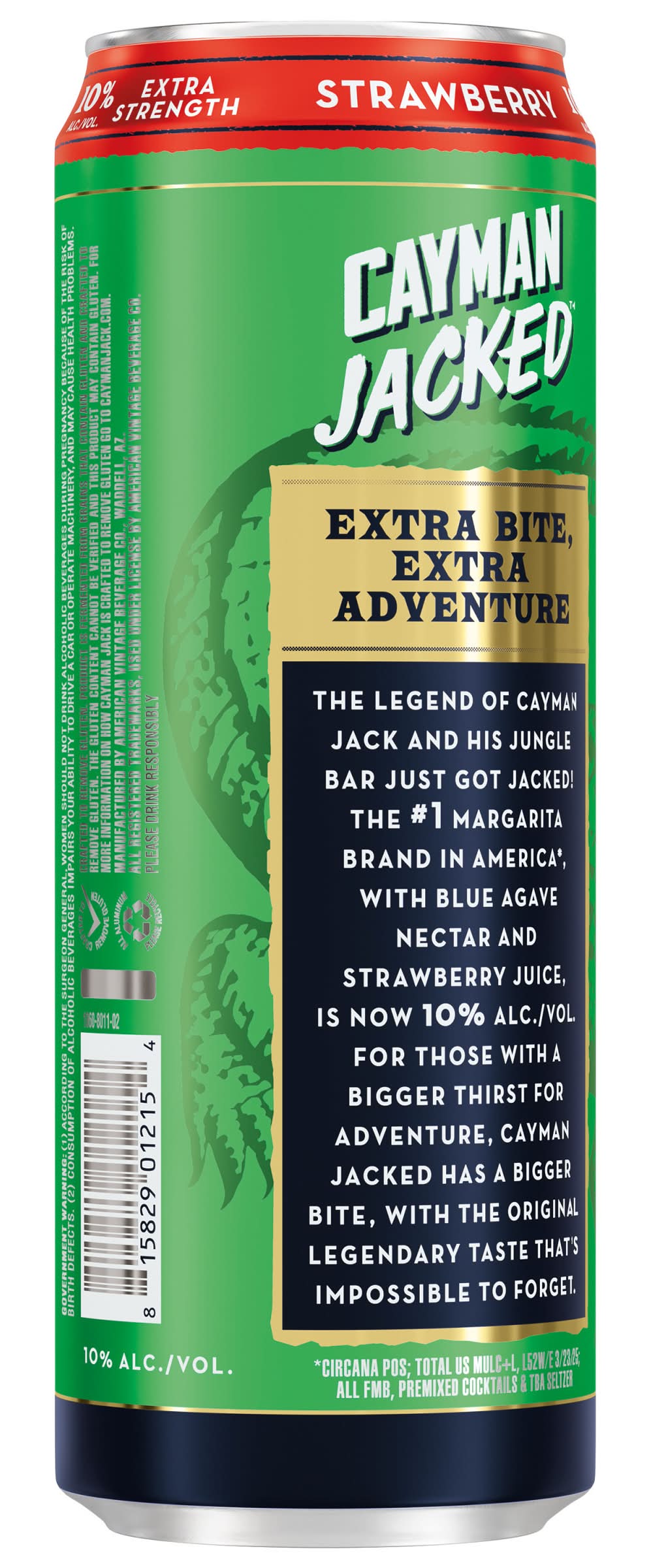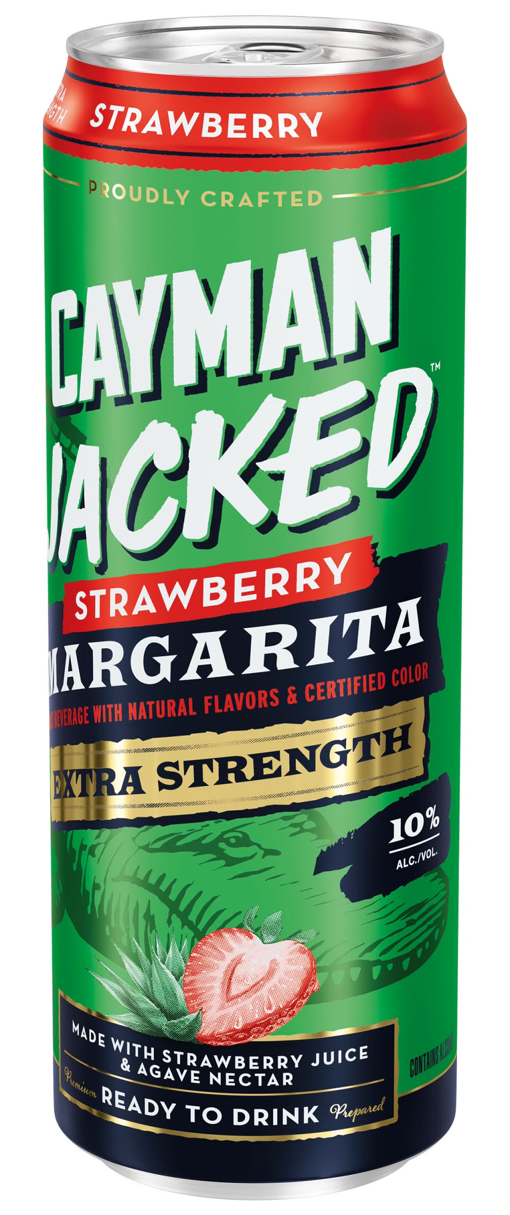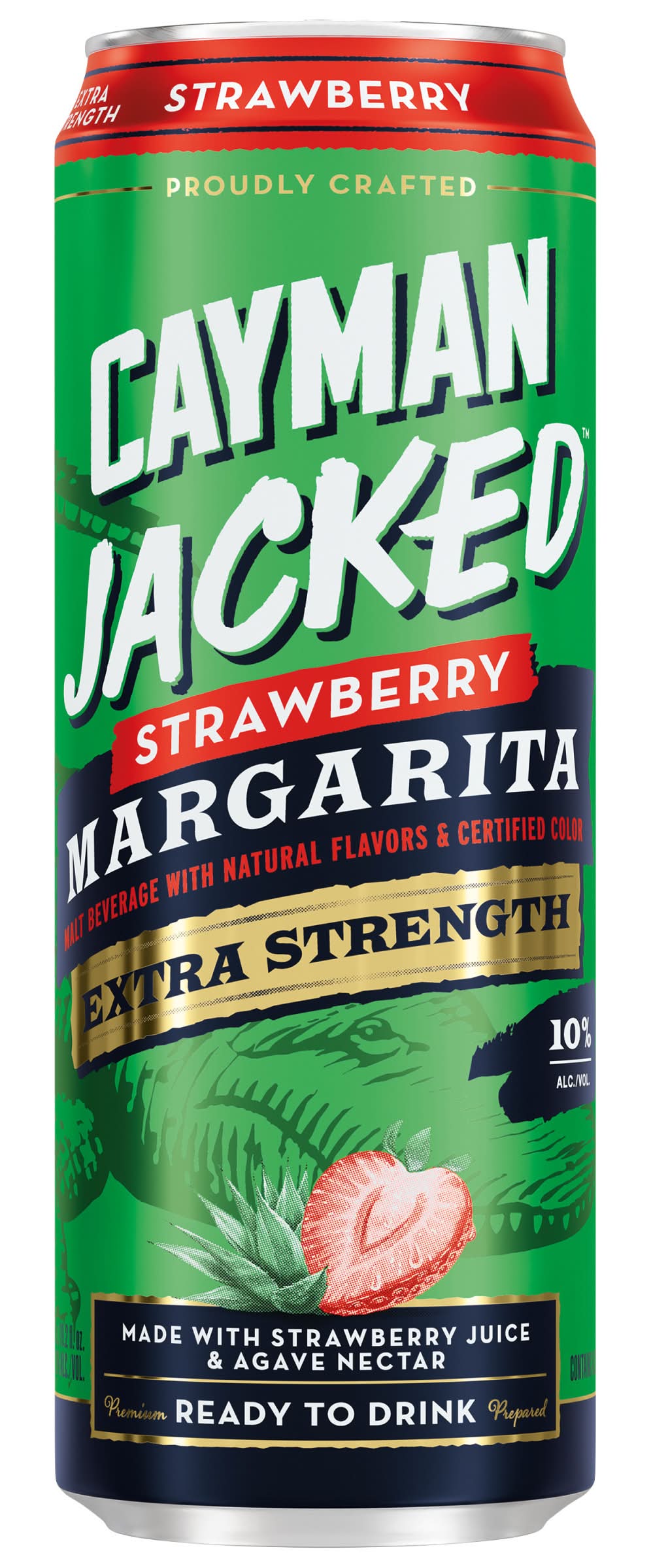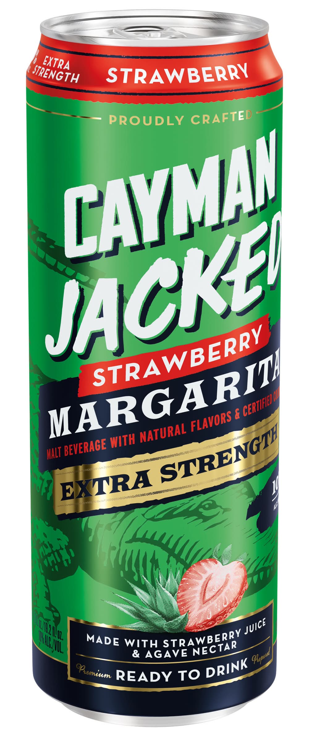 The legend of Cayman Jack and his jungle bar just got Jacked! America’s go-to Margarita with blue agave nectar, real cane sugar, and real lime juice, is now in new flavors, with 10% alcohol by volume. For those with a bigger thirst for adventure, Cayman Jacked has a bigger bite, with the original legendary taste that’s impossible to forget. Good things comes to those who wait. Don’t drink until you are 21. Premium Malt Beverage with Natural Flavors. All registered trademarks used under license by American Vintage Beverage Co., Chicago, IL. • Brand: Cayman jack • Flavor: Strawberry • Alcohol by volume: 10%