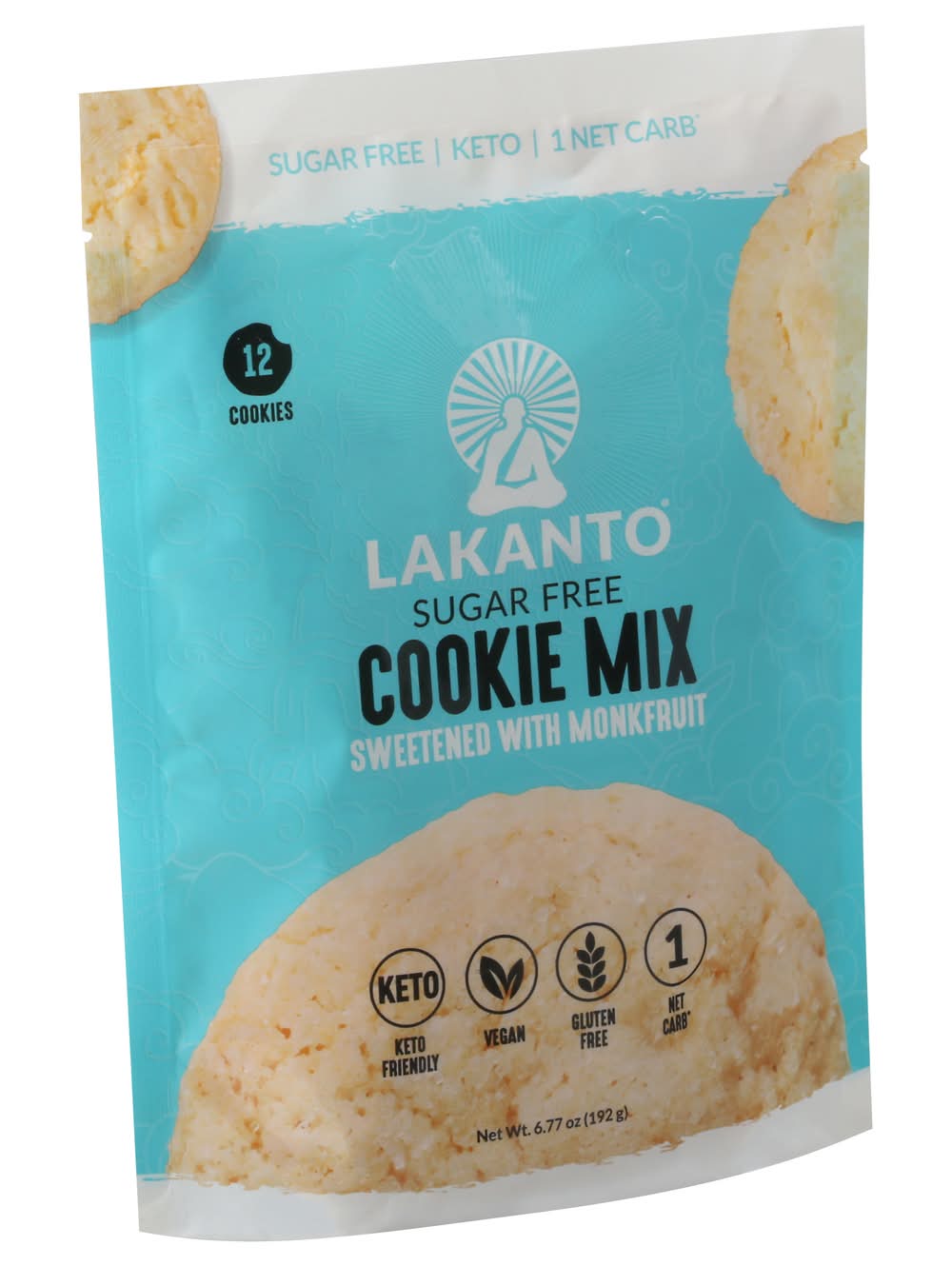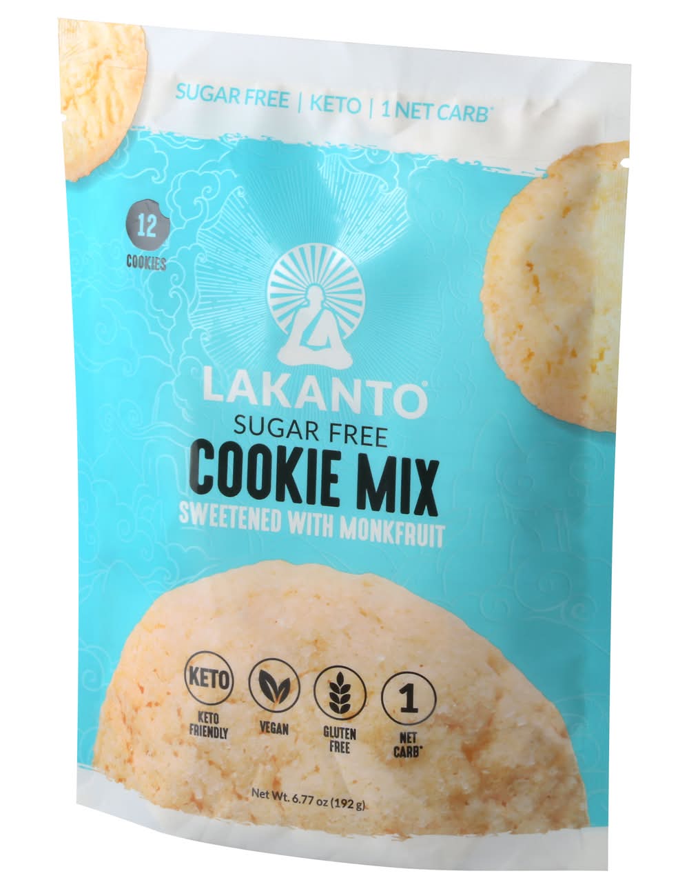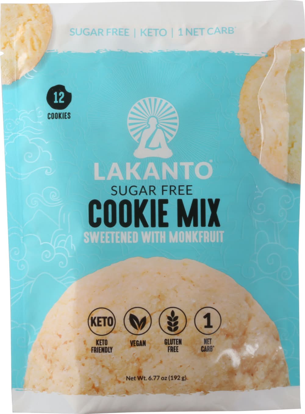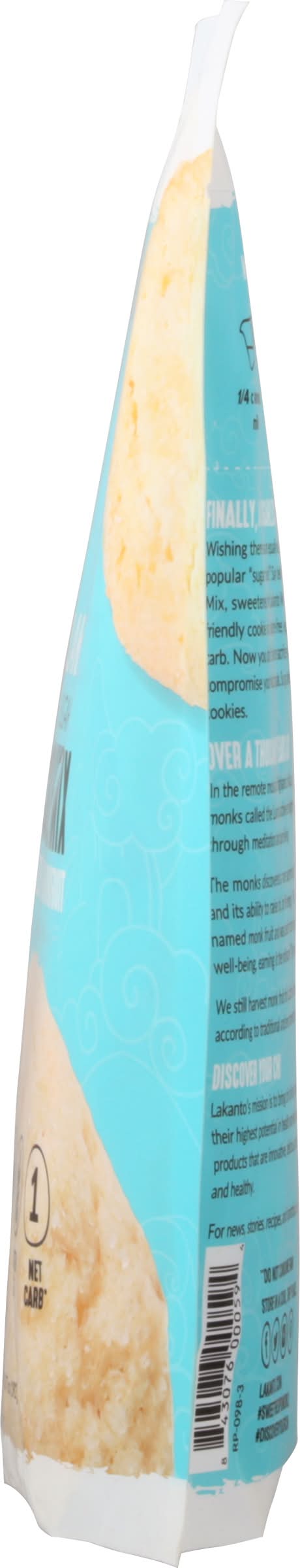 Sweetened with monkfruit. 1 net carb (Net Carbs: Subract fiber and sugar alcohols from total carbohydrates). Sugar free. Keto. Keto friendly. Vegan. Gluten free. Finally, a Sugarless Sugar Cookie: Wishing there was an equally delicious sugar-free alternative to the popular sugar cookie? Say hello to Lakanto's Sugar Free Cookie Mix, sweetened with Lakanto Monkfruit Sweetener. This keto-friendly cookie mix is gluten-free, vegan, and only contains 1 net carb. Now you don't have to sacrifice your favorite sweets or compromise your health goals. So go ahead, make you favorite cookies. Over a Thousand Years Ago: In the remote mountain highlands of Asia, a group of Buddhist monks called the Luohan achieved enlightenment and ascension through meditation and pure living. The monks discovered a rare superfood prized for its sweetness and its ability to raise chi, or life energy. This sacred fruit was named monk fruit and was used for centuries to increase chi and well-being, earning it the nickname The Immortals Fruit. We still harvest monk fruit for Lakanto in the same pristine area according to traditional and environmental methods. Discover Your Chi: Lakanto's mission is to bring chi to life by inspiring people to reach their highest potential in health and wellness and by creating products that are innovative, delicious, natural, nutritious, sugar-free, and healthy. Lakanto.com. Facebook. Twitter. Instagram. Pinterest. lakanto.com. (hashtag)sweetresponsibly. (hashtag)discoveryourchi. For news, stories, recipes, and inspiration visit Lakanto.com. Packaged in the USA.
