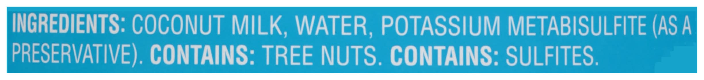 Coconut Milk, Water, Potassium Metabisulfite (as a Preservative) Contains: Tree Nuts, Sulfites