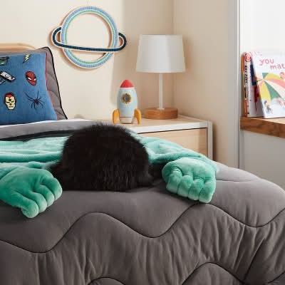 Help your kid unleash their inner hero with this Marvel Hulk Kids' Hooded Blanket from The Marvel Collection by Pillowfort. Made from soft 100% microfiber polyester, this hooded blanket features a built-in Hulk hood mask and matching gloves for the ultimate Avenger experience. This cozy blanket is great for movie night and playing and helps keep your young hero warm during all of their action-packed adventures.