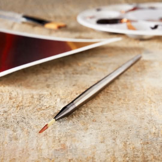 Add elegant scrawls to your artwork with this script brush from Royal & Langnickel. Available in multiple sizes. Synthetic bristles. Short ABS handle. Aluminum ferrule. For use with acrylic paints and mediums. Zen Series 93 Short Handle Script Liner Brush