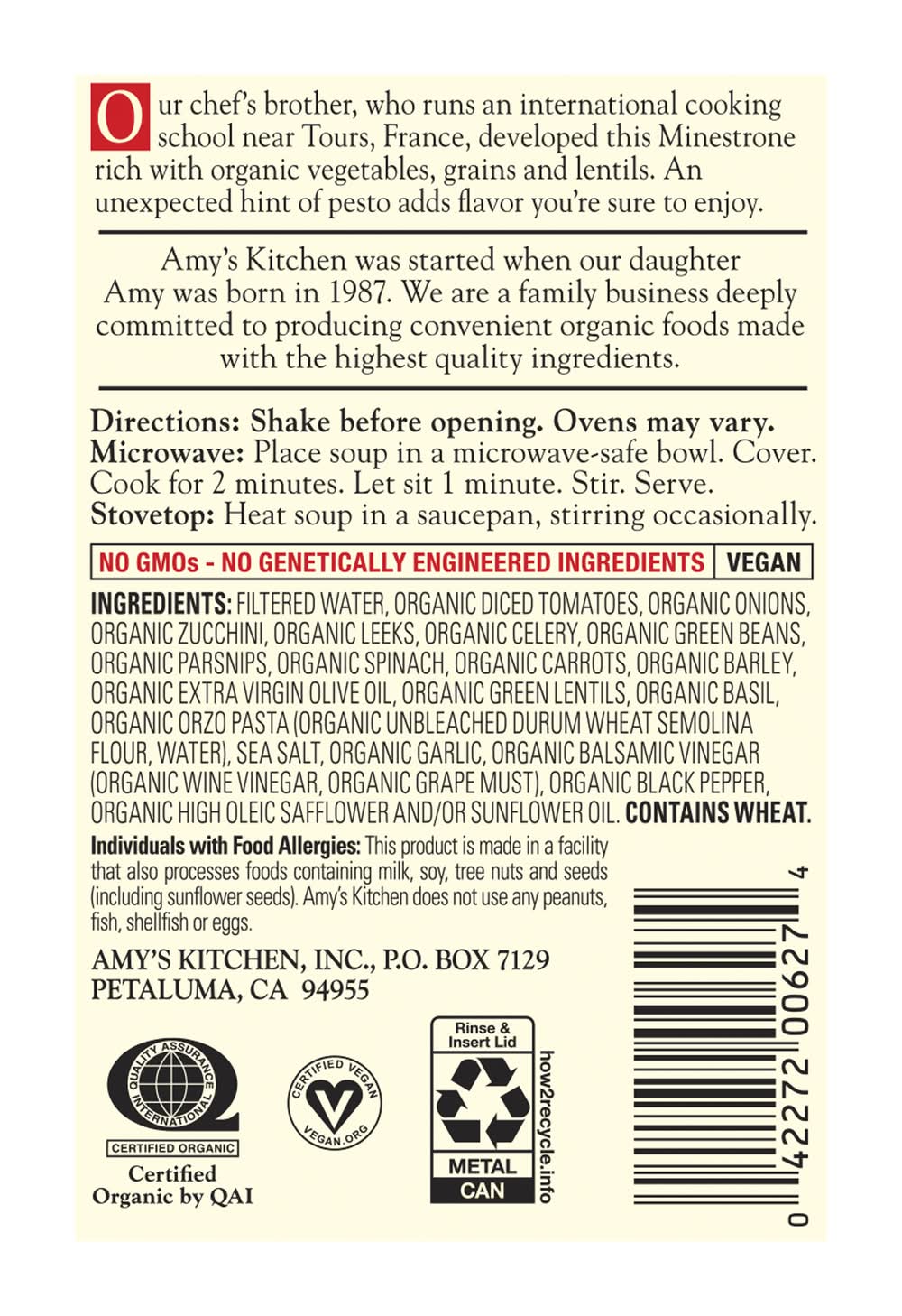 Amy's Hearty Organic Soups Minestrone With Vegetables Soup (14.1 oz)