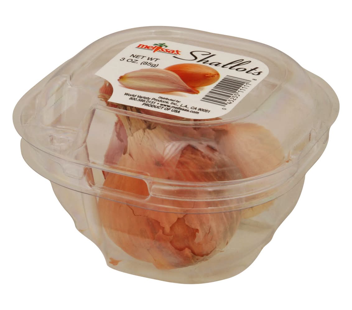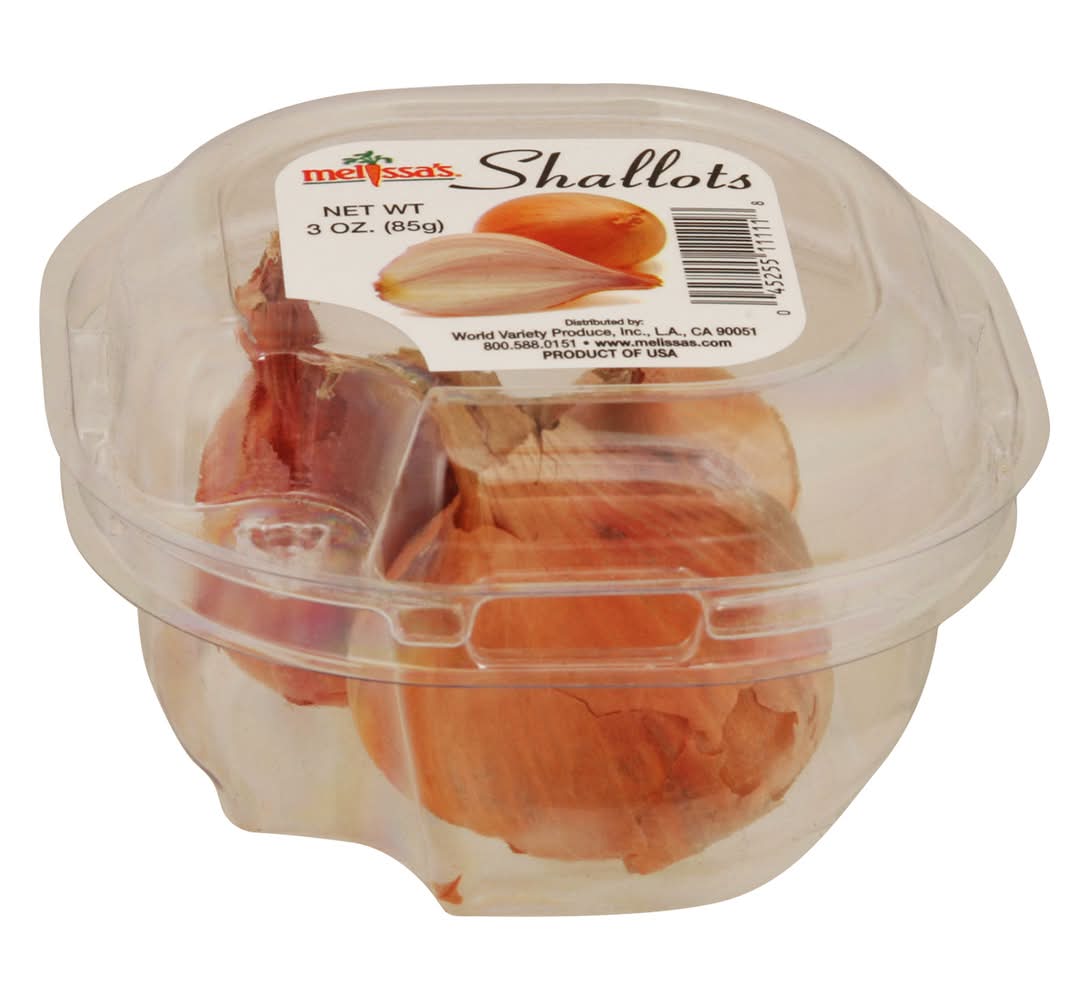 Melissa's Shallots add a slightly sweet onion and garlic flavor complementing everything from eggs and vegetables to meat and seafood. Caramelized. Roast. Sauté. Add to sauces and salads. A key component to a classic French vinaigrette. www.melissas.com. Product of USA. • World Variety Produce, Inc., • Packaging: Reusable