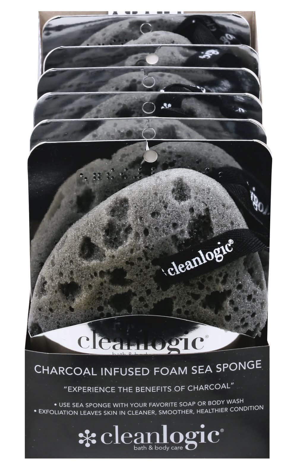 Bath & body care. Experience the benefits of charcoal. Use sea sponge with your favorite soap or body wash. Exfoliation leaves skin in cleaner, smoother, healthier condition. IMS Trading,