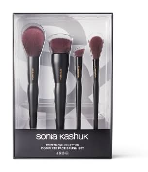 With the Complete Face Brush Set from Sonia Kashuk™ Professional Collection, you'll have the perfect tools for creating beautiful makeup looks at home. This four-piece makeup brush set includes brushes for foundation, blush and blending, with a variety of tip styles to help you apply your favorite products with ease. These cruelty-free makeup brushes are designed with soft synthetic bristles and contoured plastic handles for a great grip with easy control. Large enough for a professional look but compact enough to take on the go, they're a great starter kit for storing on your vanity and for taking with you for touchups on the go.