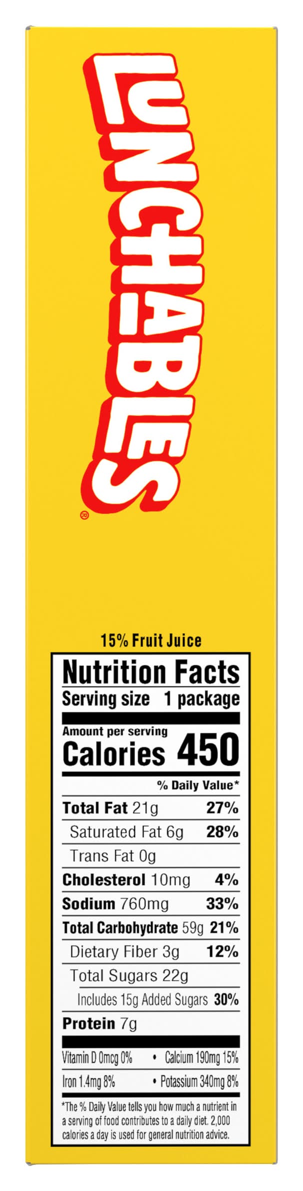 Ingredients: FRUIT PUNCH FLAVORED JUICE DRINK BLEND (FILTERED WATER; SUGAR; PEAR, GRAPE AND ORANGE JUICE CONCENTRATE; CITRIC ACID; MONK FRUIT CONCENTRATE; APPLE AND PINEAPPLE JUICE CONCENTRATE; NATURAL FLAVOR, MUSHROOM EXTRACT [TO PROTECT QUALITY]), TORTILLA CHIPS, GROUND YELLOW CORN, VEGETABLE OIL [CONTAINS ONE OR MORE OF CORN, SUNFLOWER, SAFFLOWER, OR CANOLA OIL], SALT, NACHO CHEESE (WHEY, MILK, CANOLA OIL, DRIED CORN SYRUP, SODIUM PHOSPHATES, CONTAINS LESS THAN 2% OF JALAPENO PEPPERS, SALT, WHEY PROTEIN CONCENTRATE, LACTIC ACID, SODIUM ALGINATE, CALCIUM PHOSPHATE, VINEGAR, POTASSIUM CHLORIDE, SORBIC ACID AS A PRESERVATIVE, MILKFAT, CHEESE CULTURE, ENZYMES, NATURAL FLAVOR, APOCAROTENAL [COLOR]), CONTAINS: MILK, SALSA (WATER, TOMATO PASTE, GREEN CHILI PEPPERS, VINEGAR, DEHYDRATED ONIONS, CONTAINS LESS THAN 2% OF HIGH FRUCTOSE CORN SYRUP, FOOD STARCH-MODIFIED, JALAPENO PEPPERS, SALT, GREEN BELL PEPPERS, GARLIC POWDER, SODIUM BENZOATE AND POTASSIUM SORBATE AS PRESERVATIVES, CITRIC ACID, SPICE), CRISP WAFER BAR (SUGAR, WHEAT FLOUR, COCOA BUTTER, CHOCOLATE, LACTOSE [MILK], VEGETABLE OIL [PALM OIL, PALM KERNEL OIL], SKIM MILK, MILK FAT, CONTAINS 2% OR LESS OF LECITHIN [SOY], PGPR, VANILLIN [ARTIFICIAL FLAVOR], SALT, YEAST, BAKING SODA), CONTAINS: WHEAT, MILK, SOY, MANUFACTURED IN A FACILITY THAT ALSO PROCESSES PEANUTS. Contains: CONTAINS: MILK, WHEAT, SOY.