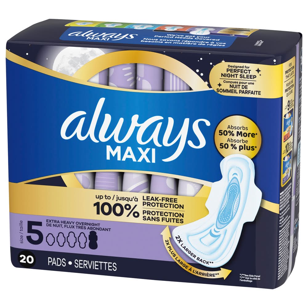 Always Maxi Extra Heavy Overnight Flow Pads, Women, 5 (20 ct)
