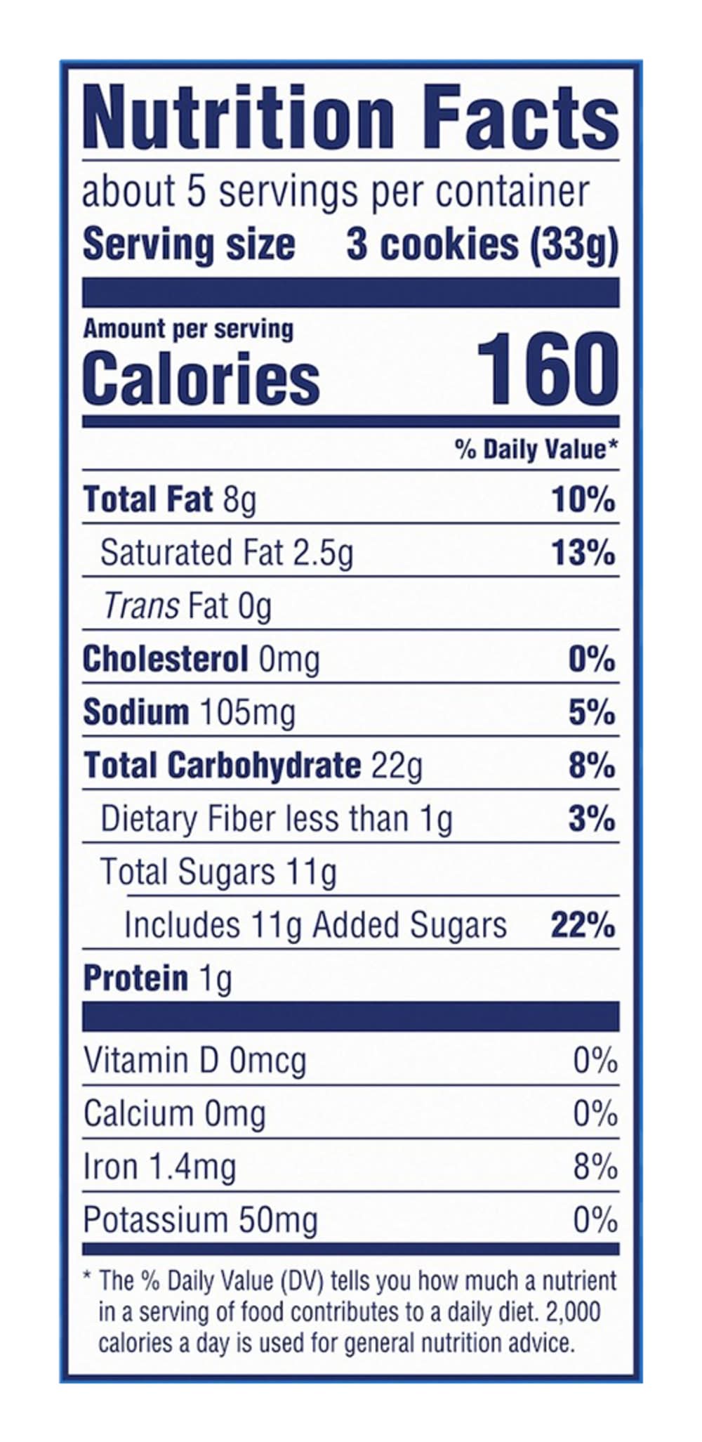 Original Chocolate Chip Cookies offer a delightful crunch with every bite. Each serving consists of three cookies, providing 160 calories, 3 grams of saturated fat, 105 milligrams of sodium, and 10 grams of added sugars. These cookies contain a bioengineered food ingredient. Size: 18.2 OZ