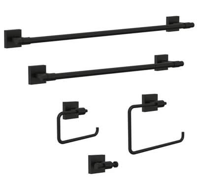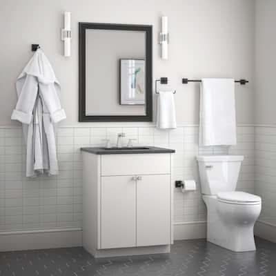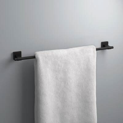 The Franklin Brass Maxted Bath Collection has a modern architecture with its symmetrical frame and streamlined contours. This fusion creates a distinguished design for your bath that is truly iconic. This 24 in. wall mount towel bar securely holds all types of towels for bathing convenience and organization. Complete your space with coordinating pieces from the full collection (sold separately). • Color: Matte black • Size: 24 in