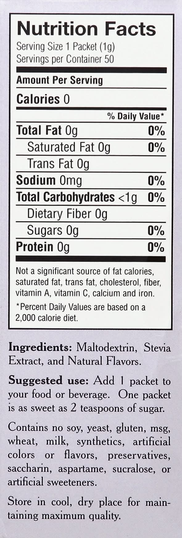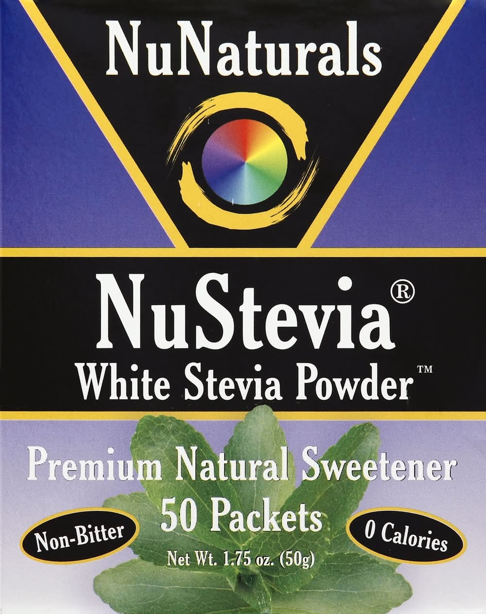 Premium natural sweetener. Non-bitter. 0 calories. NuNaturals NuStevia products use only the highest grade of stevia extract available, selected for purity, sweetness, and superior flavor. This extract does not have an unpleasant aftertaste. Plant-based natural flavors are added to make our NuStevia products the best-tasting ones available. NuStevia is a natural herbal sweetener. Maltodextrin is a carbohydrate. It is used to make it easier to measure the NuStevia extract and act as a filler so the concentrated extract can be put into packets. NuNaturals NuStevia should not affect blood sugar levels in most individuals. NuStevia is great for people wanting to control the calories in their diet. nunaturals.com. facebook.com unaturals. 800-753-4372 (herb). 541-344-9785 (international/local). Contains no soy, yeast, gluten, MSG, wheat, milk, synthetics, artificial colors or flavors, preservatives, saccharin, aspartame, sucralose, or artificial sweeteners. NuNaturals NuStevia White Stevia Powder packets provide the ultimate convenience. Our packets make it very easy to take NuStevia with you to work, restaurants, or other places where you may want to use NuStevia. The pre-measured packets take the guesswork out of how much NuStevia to use. NuStevia Extract Powder is highly concentrated and great for use in recipes or large batches of beverages.
