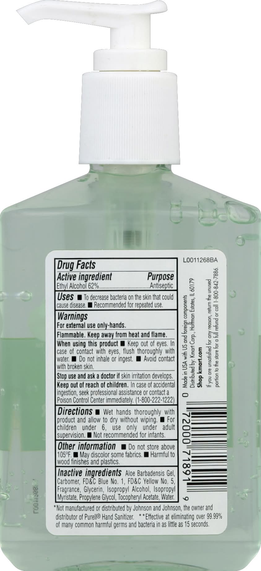 Active Ingredient: Ethyl Alcohol (62%). Inactive Ingredients: Aloe Barbadensis Gel, Carbomer, FD&C Blue 1, FD&C Yellow 5, Fragrance, Glycerin, Isopropyl Alcohol, Isopropyl Myristate, Propylene Glycol, Tocopheryl Acetate, Water