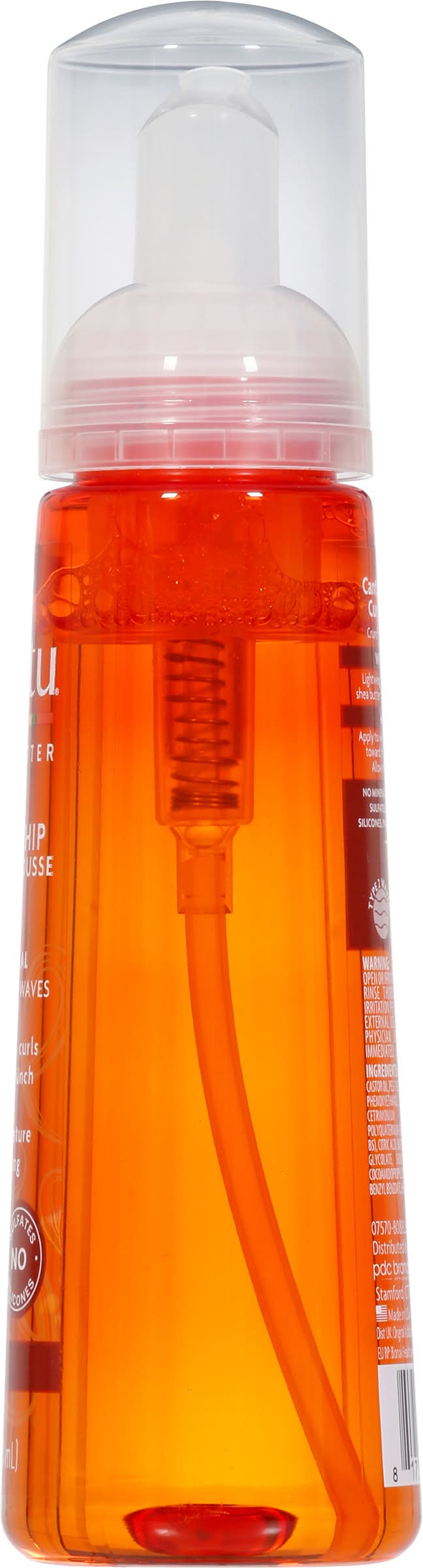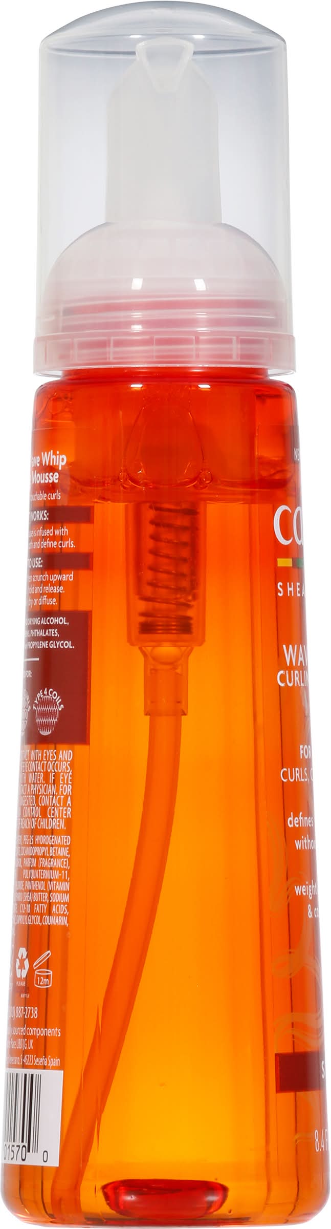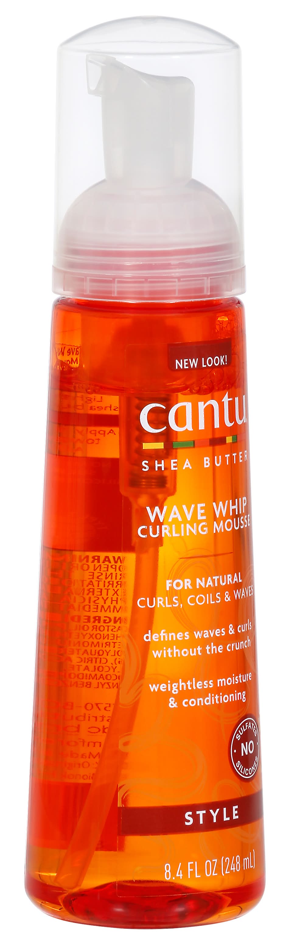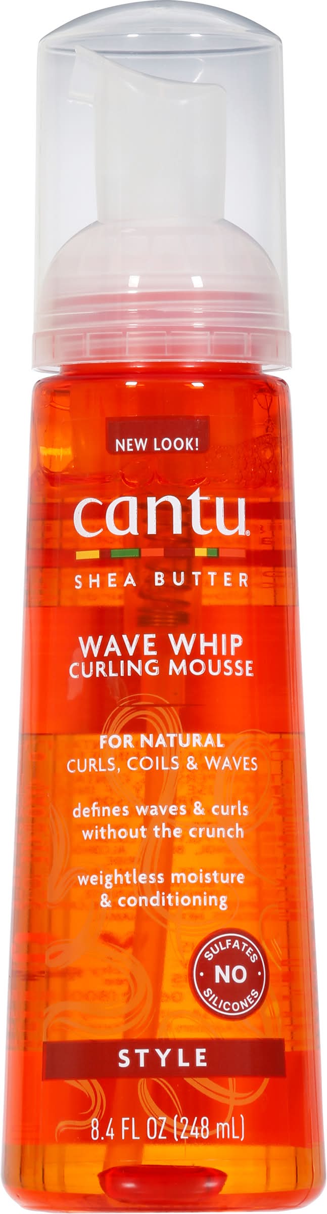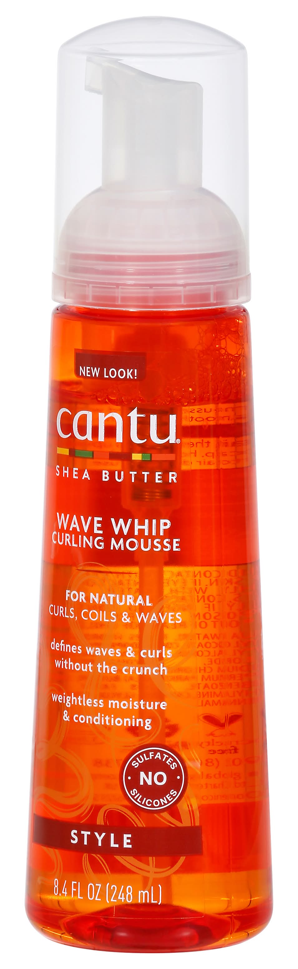 New look! For natural curls, coils & waves. Defines waves & curls without the crunch. Weightless moisture & conditioning. No: sulfates; silicones. Cantu Wave Whip Curling Mousse. Crunch-free, touchable curls. Why it Works: Lightweight mousse is infused with Shea butter to smooth and define curls. No mineral oil, no drying alcohol, sulfates, parabens, phthalates, silicones, paraffin or propylene glycol. Good for: Type 2 waves. Type 3 curls. Type 4 coils. Cruelty free, touchable curls. Please recycle. Made in USA with globally sourced components. • Size: 8.4 OZ • PDC Brands, Stamford, CT, 06902 • Packaging: Reusable