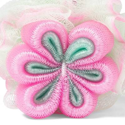 More Than Magic Flower Mesh Bath Sponge, White-Pink=Green
