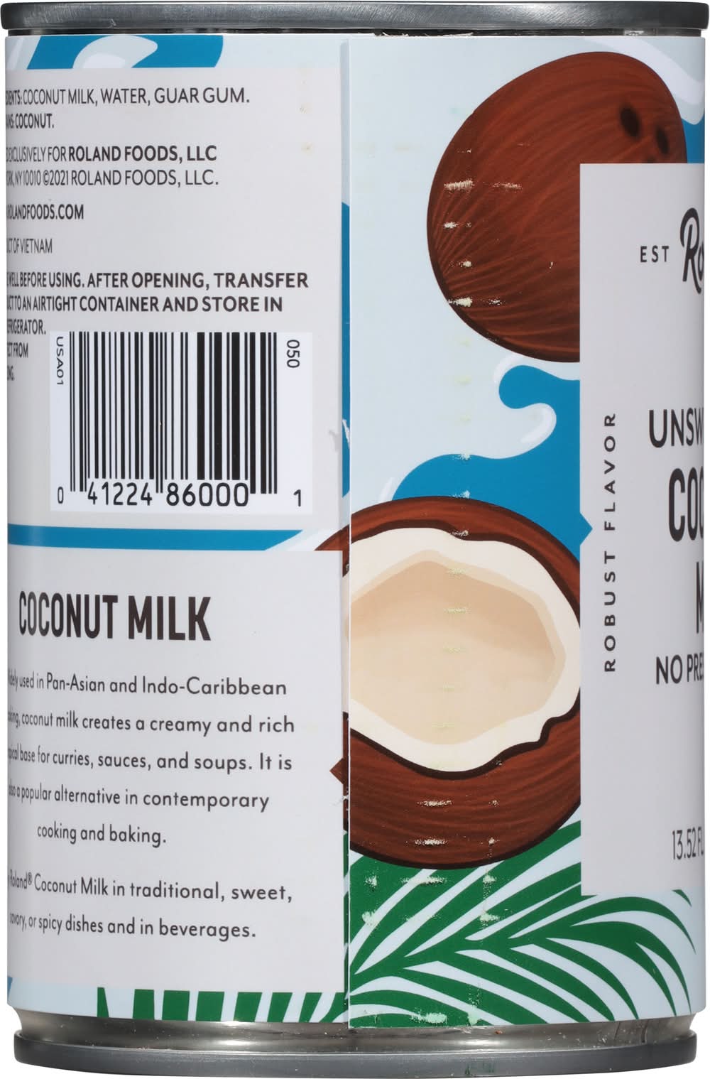 Est. 1934. Robust flavor. Rich & velvety. Widely used in Pan-Asian and Indo-Caribbean cooking, coconut milk creates a creamy and rich tropical base for curries, sauces, and soups. It is also a popular alternative in contemporary cooking and baking. www.rolandfoods.com. Try Roland Coconut Milk in traditional, sweet, savory, or spicy dishes and in beverages. Product of Vietnam. Roland Foods, LLC,