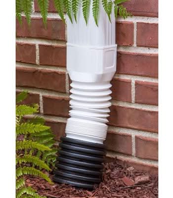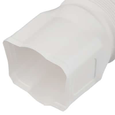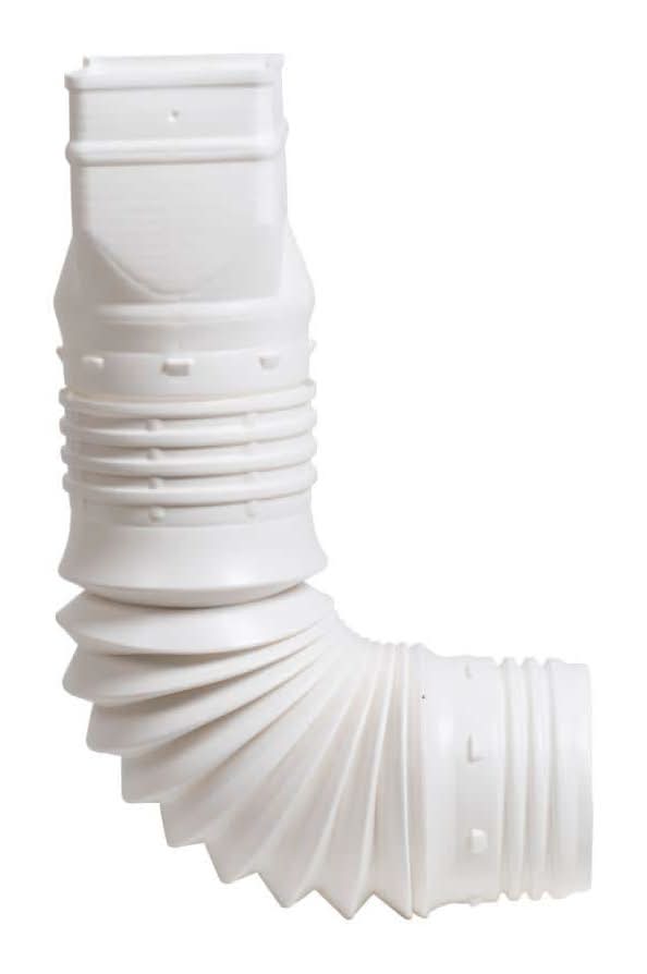 The Amerimax Home Products Flex-A-Spout Downspout Extension has a rigid, corrugated design for versatility and a durable vinyl construction. The extension can be buried, bent or connected to additional sections and can extend from 8 in. to 18 in. Use this downspout extension to divert water away from the foundation or connect to drainage pipe and catch basin to control drainage. This product connects 3 in. x 4 in. downspouts to 3 in. or 4 in. drainpipes. Also referred to as a bracket, connector, coupling or collar. Color: White