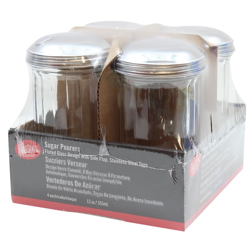 Pourers, Sugar, Fluted, Glass, 4 Ct Package