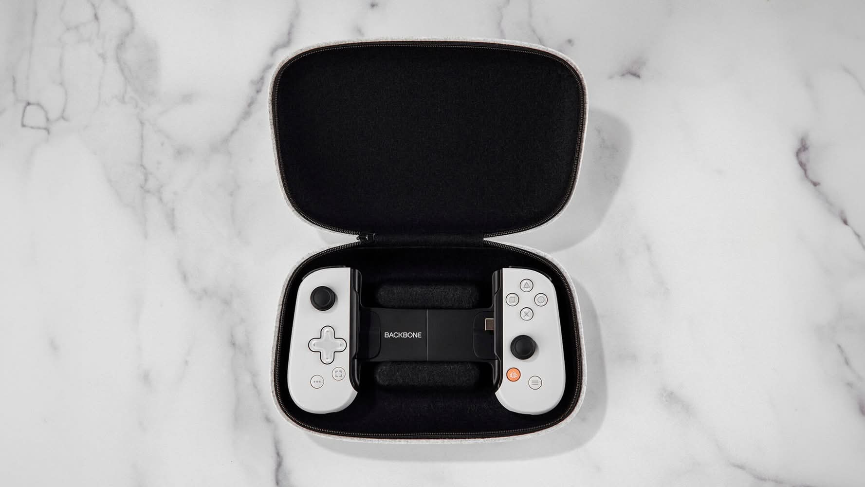Protect your Backbone One - PlayStation Edition in style, at home or on the move. This lightweight, portable carrying case stores your Backbone safely and efficiently. A firm outer shell and molded interior provides protection against bumps, rattles and drops. The gray felt molded shell has a soft feel, debossed Backbone logo and slim profile which present a sleek and premium feel. A bonded, low profile zipper guarantees easy access wherever you go without interrupting the Carrying Case’s clean appearance. Works with all Backbone One and Backbone One - PlayStation Edition controllers for iOS and Android and fits with the Backbone iPhone 13/14 adapter installed. Color: White