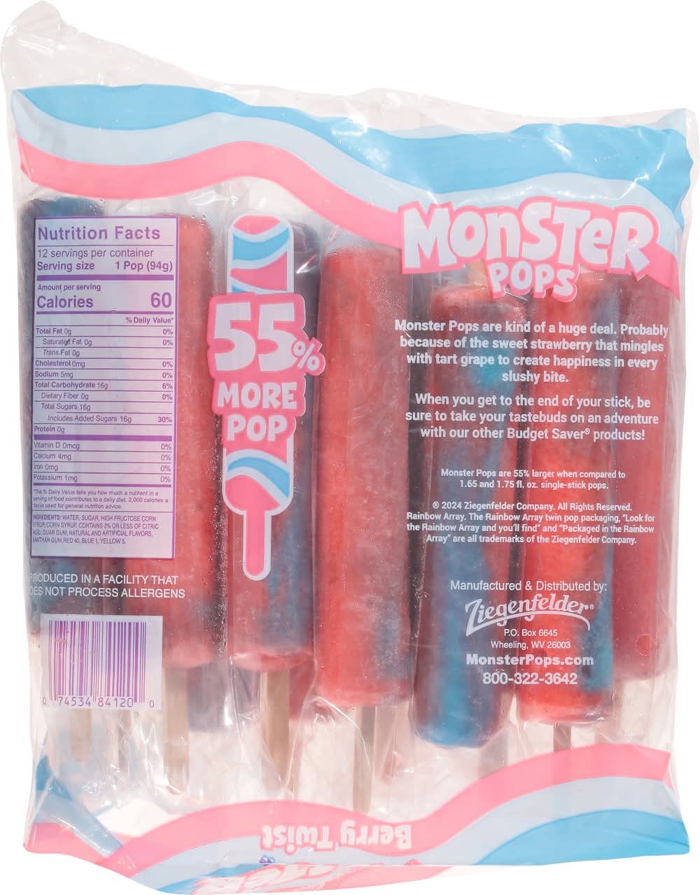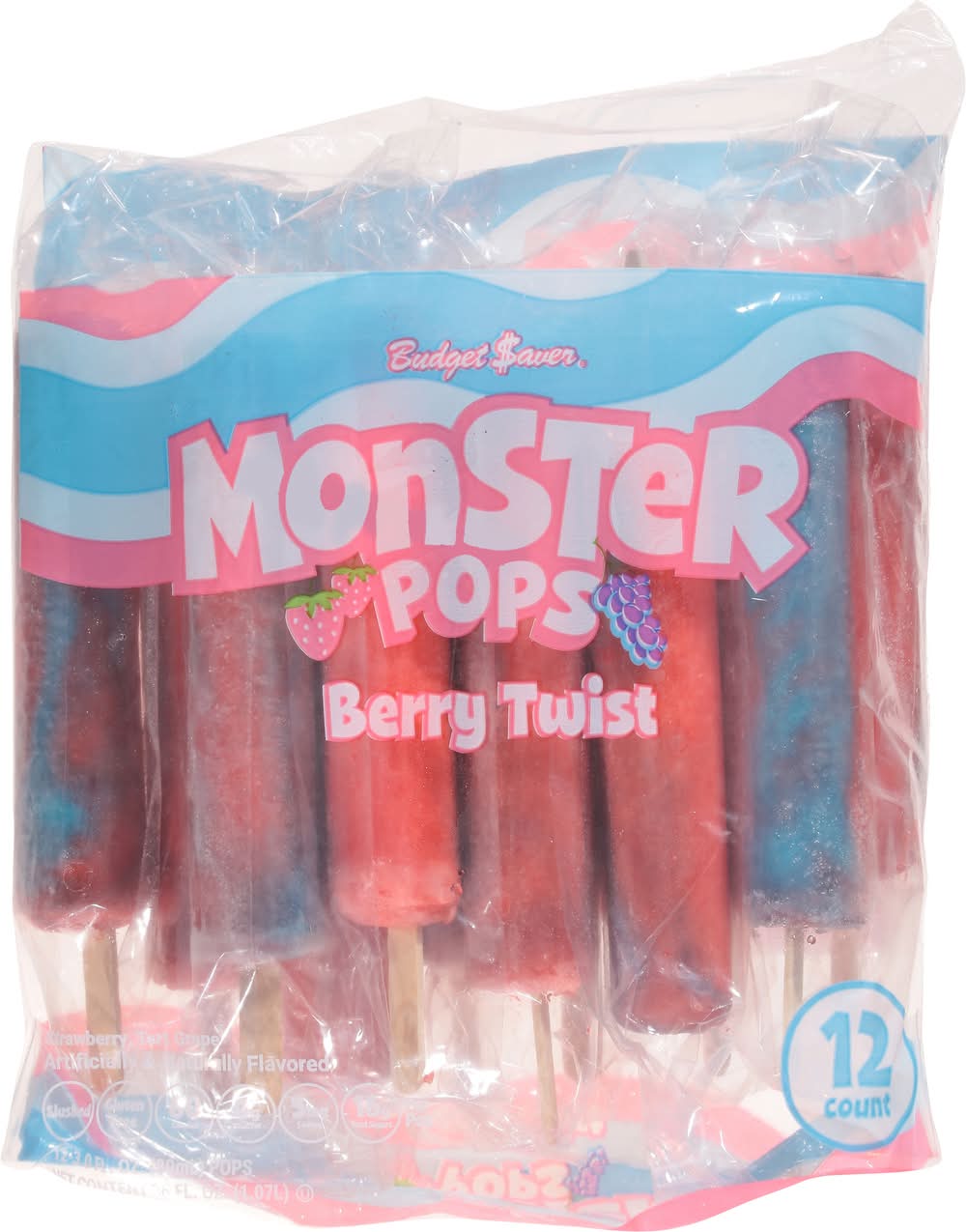 Budget Saver Ice Monster Pops, Berry Twist (12 x 3 fl oz)