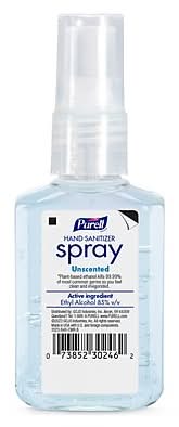 This spray sanitizer offers a powerful way to kill germs without dyes or scents. Ready to use whenever a quick refresh is needed with a fun, new format from the trusted PURELL brand. PURELL Hand Sanitizer Spray is backed by a powerful formula and is ready to use whenever a quick refresh is needed. This spray sanitizer leaves hands feeling clean and smelling amazing. Our hand sanitizers have been trusted to kill germs and care for skin for years. Now, we've developed a refreshing spray that kills 99.99% of germs that may cause illness. Our active ingredient is high quality, plant-based ethanol produced in the USA. It's free of scents, dyes, parabens, phthalates, and sulfates. Triclosan is never an ingredient in our hand sanitizer. Put your mind at ease whenever you touch shared surfaces with convenient two-ounce bottles that are perfectly sized to fit wherever you'd like to have access to hand sanitizer. Take them on the go wherever life takes you, or keep them ready to grab in desk drawers, in your car's center console, and in the kitchen. The small size is airport and TSA-friendly. - This formula is proven to kill 99.99% of most common germs that may cause illness with high-quality ethyl alcohol and carefully selected ingredients. - Leaves your hands feeling clean and refreshed; free of fragrances, dyes, parabens, phthalates, and sulfates. - The perfect accessory for on-the-go moments, you can carry this travel-friendly bottle with you whenever you're in public or touching shared items. - PURELL Hand Sanitizing Spray is 4x more effective when tested against a more expensive hand sanitizer mist. - This product is manufactured by a certified Women-Owned Business. - Safety Data Sheet