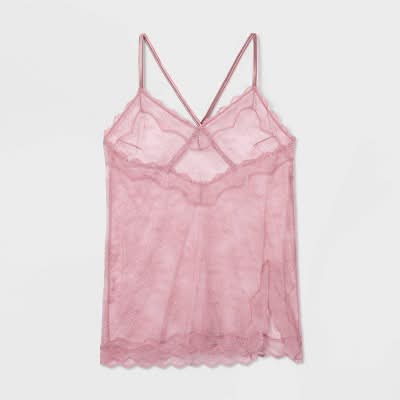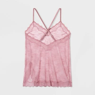 This above-knee-length lingerie slip dress is made from soft, stretchy sheer fabric with a single-layered construction to help keep you comfy from day to night, while the delicate lace design and side slit elevate the look. Adjustable straps and crisscross back make it easy to find the perfect fit.
