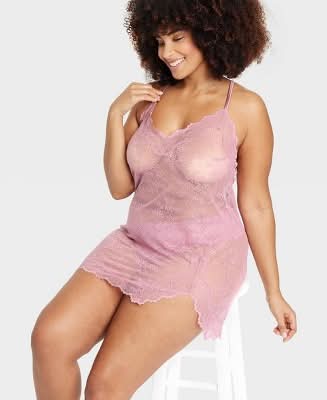 Auden Allover Lace Lingerie Slip Dress, Women, XXL, Mauve