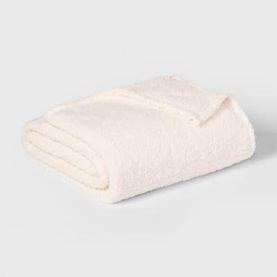 Room Essentials Faux Shearling Bed Blanket, XL, White