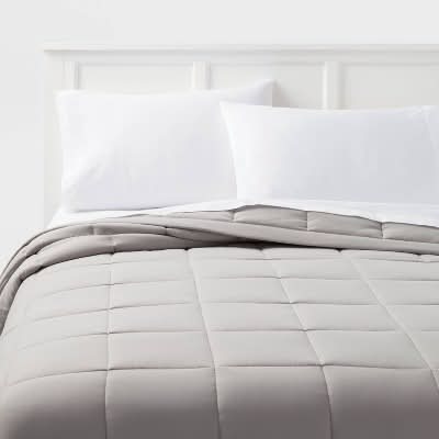 Room Essentials Quilted Down Alternative Bed Blanket, Full/Queen, Gray