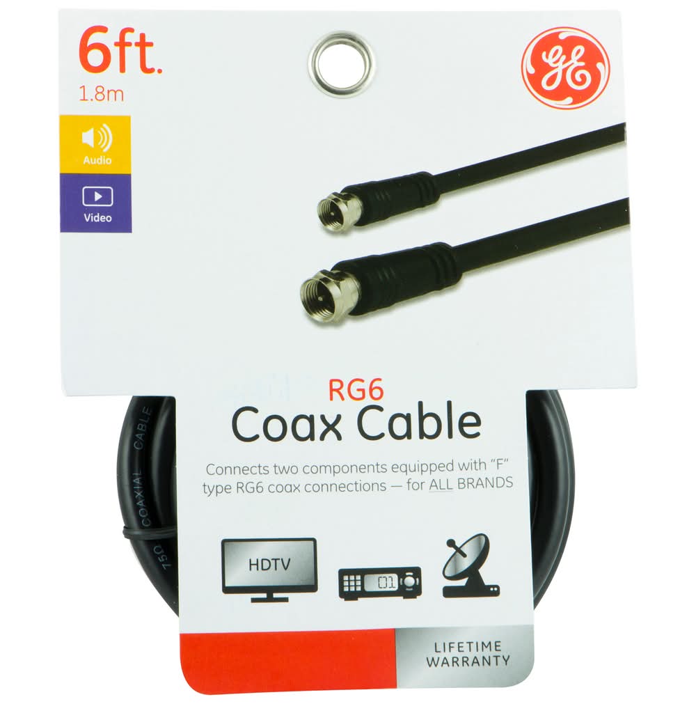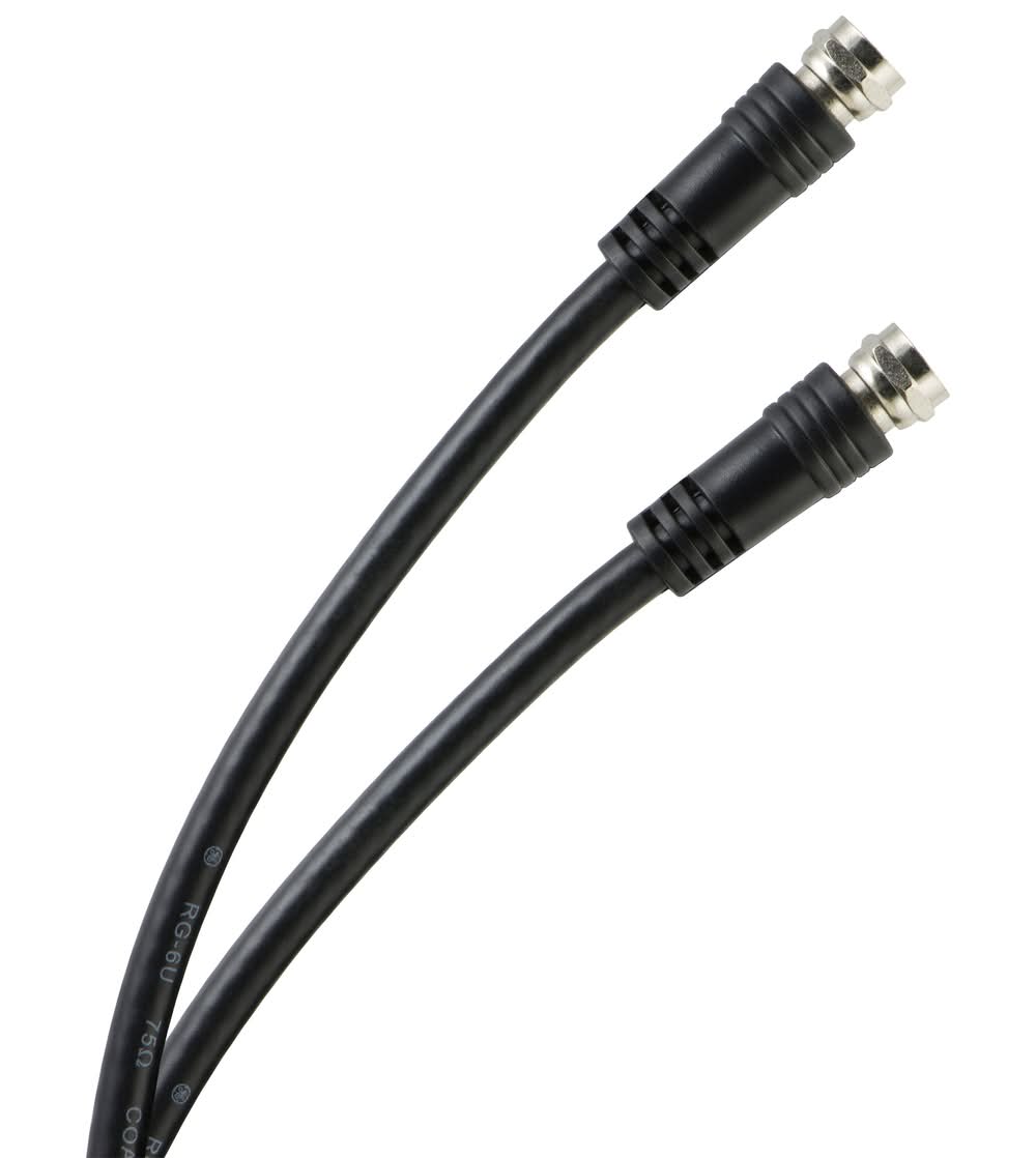Universally compatible: Easily connect any two components equipped with F-type coax connectors such as a TV, indoor antenna, VCR, DVR, cable or satellite box, modem, router and more. Easy indoor installation: Simple, convenient and screw-on coaxial cable connectors allow you to quickly attach the cable; no tools required, but keep in mind that this cable is not for outdoor use or in-wall installations. Extended reach: This 6ft black RG6 coax cable offers the perfect length for versatile home theater and office setups. Durable design: The black cable's PVC jacket ends with nickel-plated connectors to provide a sleek design to fit into any setup while having the durability to stand up to long-term indoor use. Customer satisfaction: This coax cable is designed to last and comes with a limited-lifetime replacement pledge - call our free US-based consumer care at 1-800-654-8483 between 7AM and 8PM central time with any questions about your purchase.