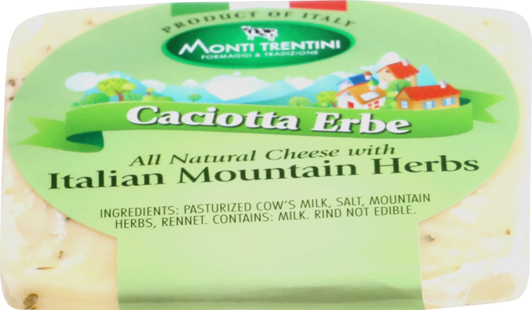 All natural cheese with Italian mountain herbs. Rind not edible. montitrentini.com. Product of Italy. Casearia Monti Trentini,