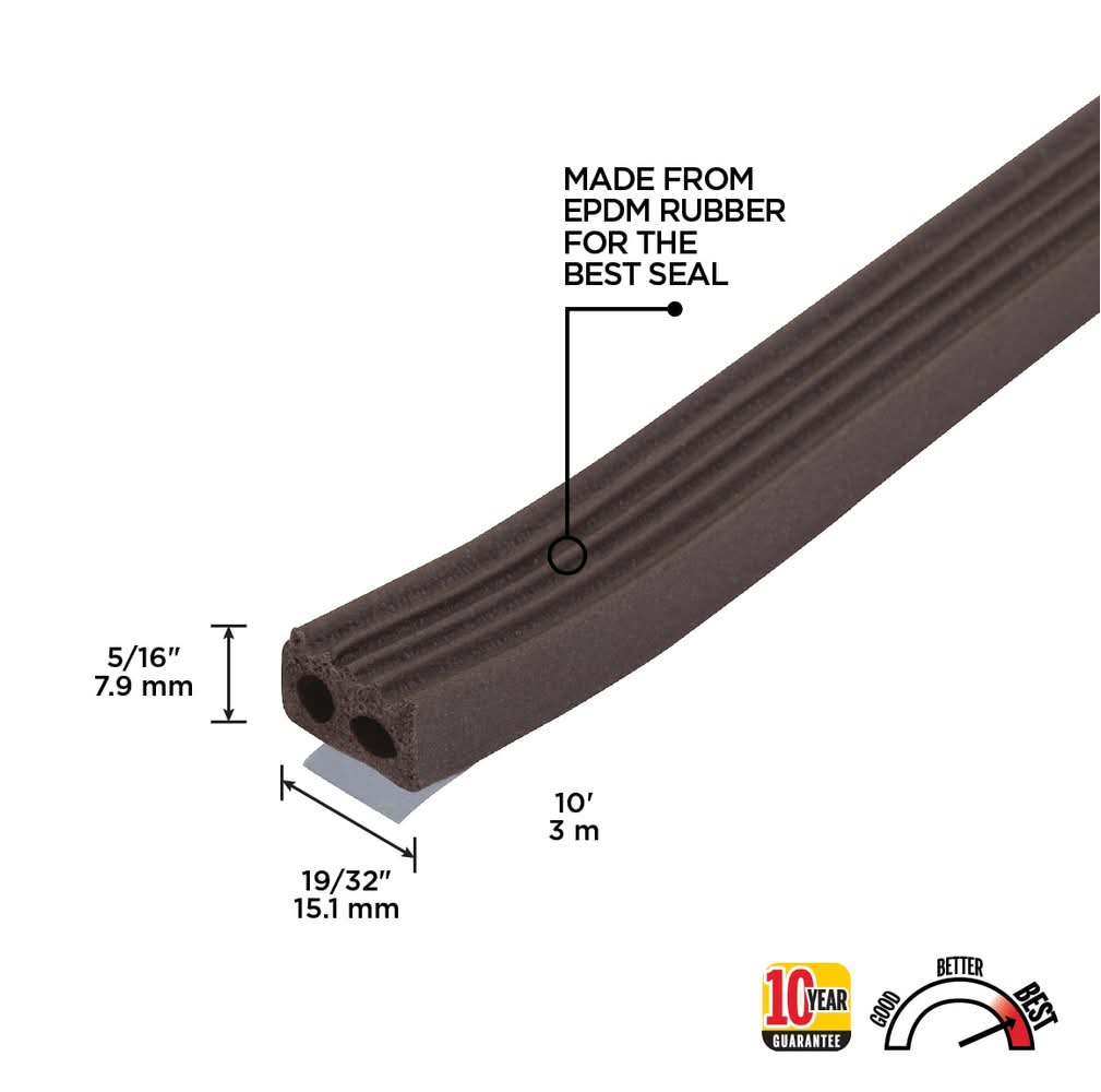 The M-D EPDM Rubber Window Seal for Large Gaps is designed to protect against drafts, moisture, dust and insects. Save on energy by sealing windows keeping the heat or air conditioning from escaping. Made of high-quality EPDM Rubber this seal exhibits very high sealing properties for a window and it provides maximum resistance to wear and tear. The self-adhesive design is easy to install by simply pressing onto a clean and dry surface. No hardware required. Before installation, cut to desired length using scissors. • Color: Brown • Size: 7.9x15.1mm x 3m • Packaging: Reusable