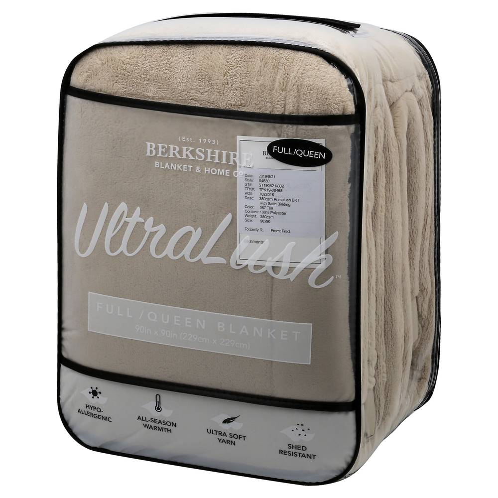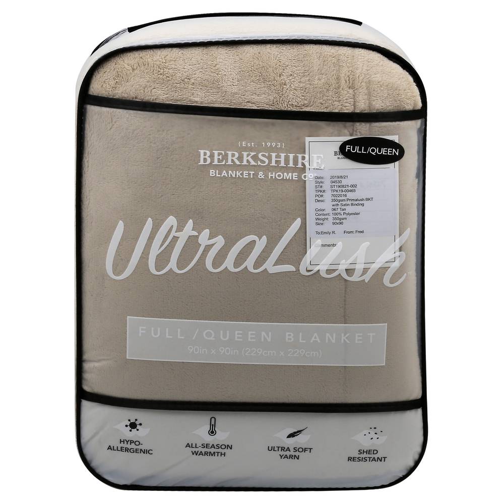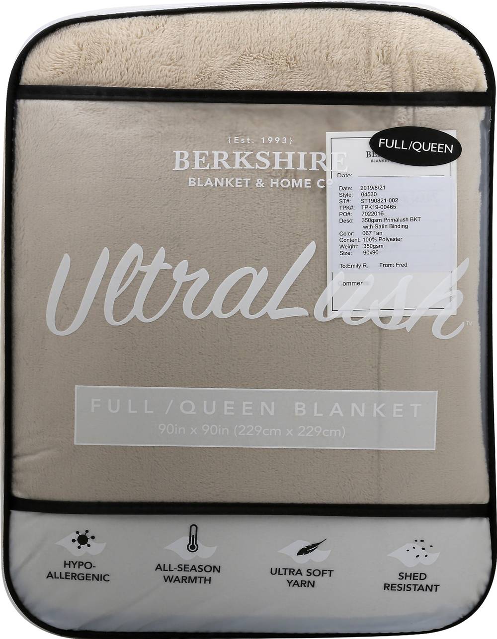 Established 1993. Size: 90 inches x 90 inches (229 cm x 229 cm). Description: 350gsm Primalush Blanket with Satin Binding. Weight: 350gsm. Hypo-allergenic. All-season warmth. Ultra soft yarn. Shed resistant. Hypoallergenic: Ultra premium yarns stand up to frequent washings, eliminating allergens. All-season warmth: The perfect weight and plushness keeps you comfortable all year long; Ultra-soft yarn: Authentic premium quality yarns are softer, finer, and plusher than anything you've felt before; Shed resistant: Premium finishing processes reduce excess fibers and lint even with prolonged use. Blanket comfort scale: Lighter, warmer. berkshireblanket.com. Designed in New England. Made in China. Berkshire Blanket,