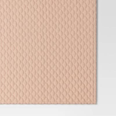 Add a soft splash of color and tasteful texture to your decor with this Oversized Puffy Triple-Knit Throw Blanket Made from lightweight recycled polyester with spandex, this rectangular blanket showcases an oversized puffy design in light pink for a lovely look. Whether snuggling up on a chilly night or adding a stylish accent to your space, it is a must-have accessory, boasting convenient care with its machine-washable design. • Color: Pink • Size: 50x60 in