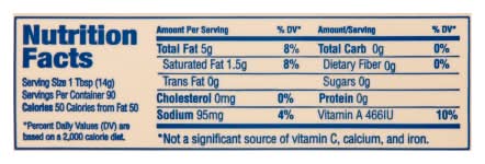 Water, Vegetable Oil Blend (Soybean Oil, Palm Oil and Palm Kernel Oil), Salt, Mono and Diglycerides, Whey (Milk), Polyglycerol Esters of Fatty Acids, Artificial Flavor, Potassium Sorbate (Preservatives), Lactic Acid, Soy Lecithin (Soy), Calcium Disodium EDTA used to protect quality, Colored with Beta Carotene, Vitamin A Palmitate added Contains: Milk, Soy