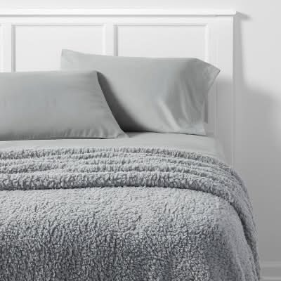 Room Essentials Faux Shearling Bed Blanket, Queen, Gray