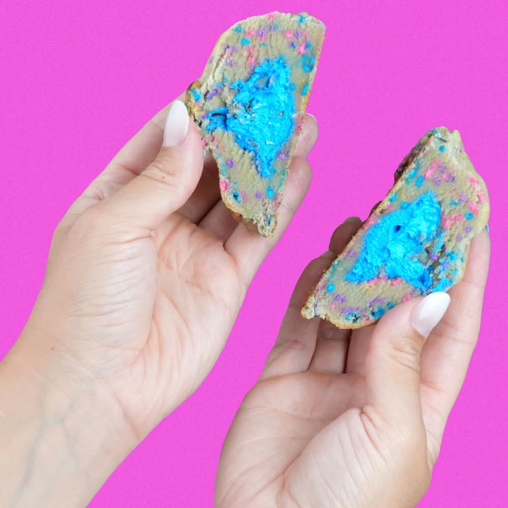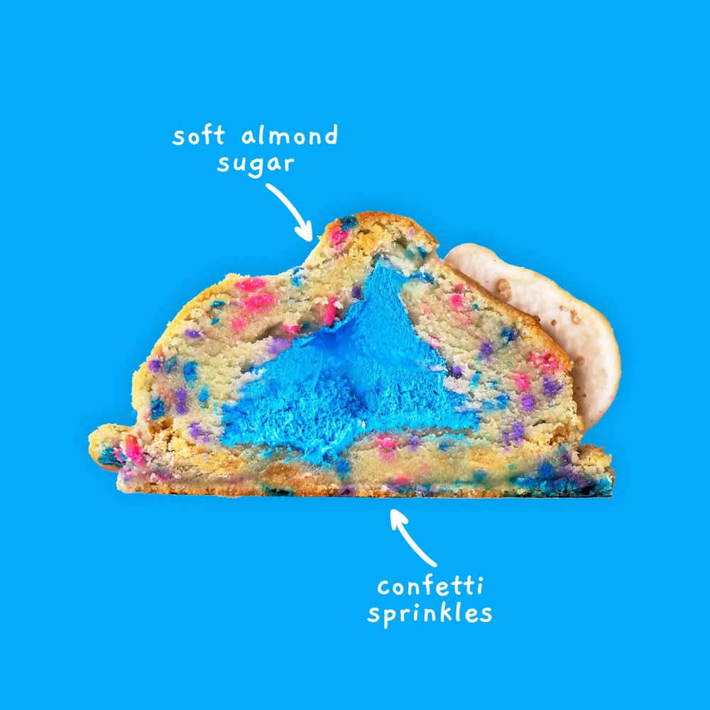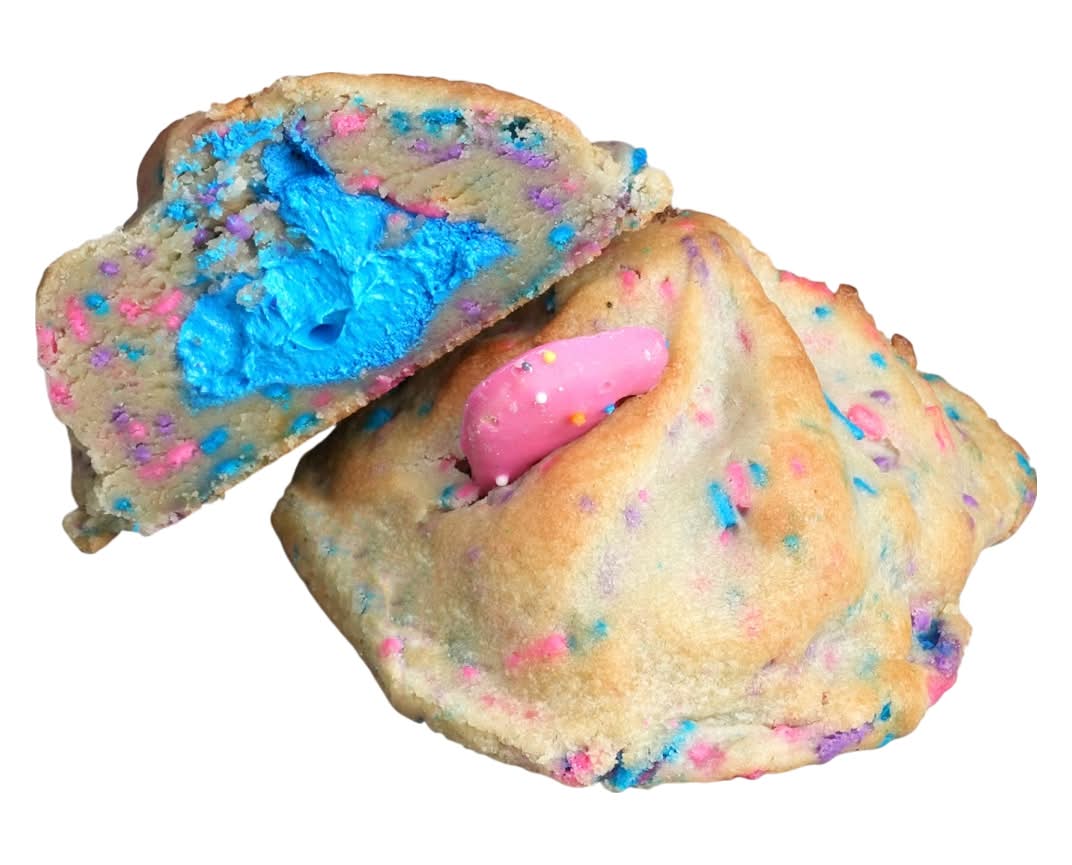 A soft almond sugar cookie base swirled with an overload of confetti sprinkles, packed with frosted animal cookies, and stuffed with gopuff blue animal cracker frosting. Just like a night out on the town, this cookie has everything you need for a wild time.
