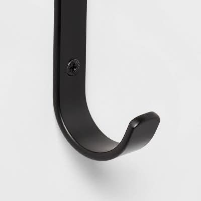 This Metal Hook lends an industrial flair-infused storage spot to your home. It has a single flattened metal hook and is made with a matte black powder-coated finish that goes well with just about any type of decor. The space saving design provides a stylish storage solution for hanging towels, coats, scarves, belts and more. Color: Matte black