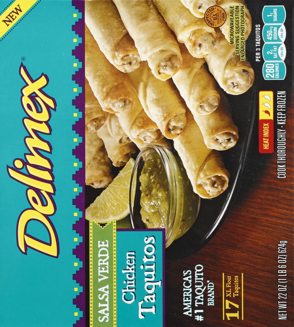 Delimex Chicken Taquitos, Salsa Verde, XL (22 oz, 17 ct)