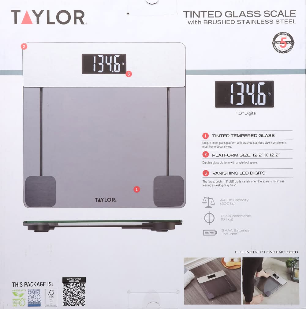 Taylor Capacity Tinted Glass Scale With Brushed Stainless Steel