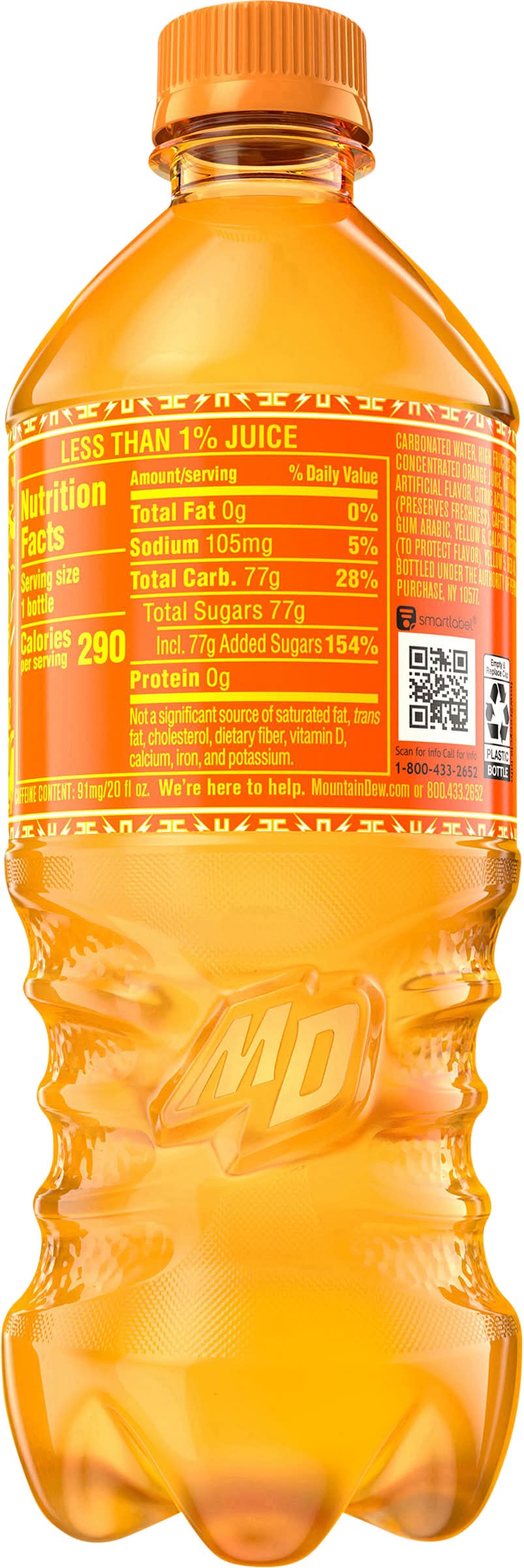 The original, the one that started it all... Mountain Dew exhilarates and quenches with its one of a kind, bold taste. Enjoy its chuggable intense refreshment. Crack open a cold can of Mountain Dew and refresh your taste buds. Mountain Dew, the original instigator, refreshes with its great taste. • Flavor: Orange • Size: 20 OZ • Packaging: Reusable
