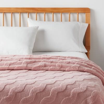Room Essentials Wavy Jacquard Plush Blanket, Full/Queen, Pink
