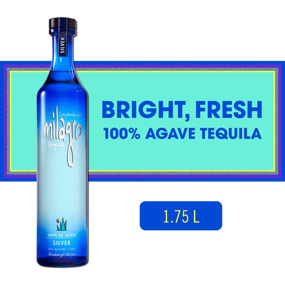 Welcome to a brighter side of tequila, where the sun always shines and fresh is best. Milagro Silver is a 100% blue agave tequila renowned for its bright, fresh agave flavor and exceptional smoothness. Please enjoy Milagro Tequila responsibly. • Alcohol by volume: 40% • William Grant & Sons, • Packaging: Reusable