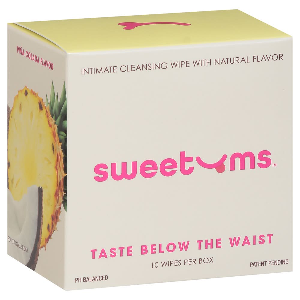 Intimate cleansing wipe with natural flavor. Taste below the waist. pH Balanced. Happy Wipe, Happy Life. Sweetums wipes help you feel sexy, confident and playful. Use when your down there needs a little refresh or when you want to surprise your partner with a tasty treat. www.sweetumswipes.com. Made in the USA with global components. Sweetums, Inc,