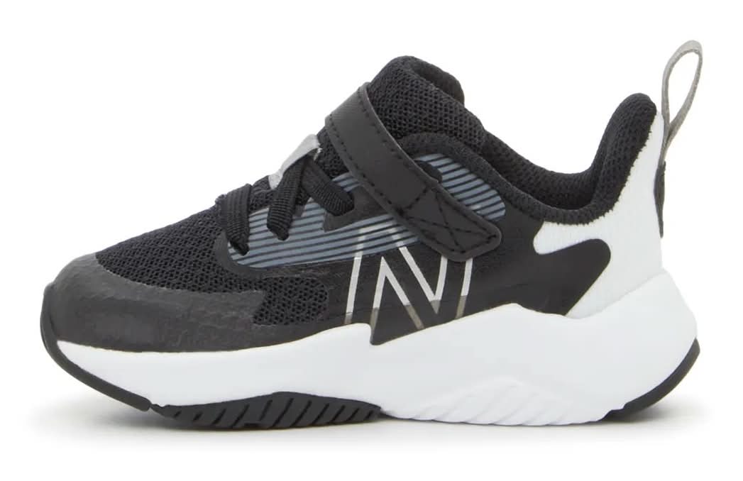 The perfect playground pair, the Rave Run v2 sneakers from New Balance are a sporty style that offers maximum support for your kiddo. This bold style features a unique design that adds a fun addition to their active looks. Crafted with a secure hook & loop strap that makes this pair a fuss-free addition! Not sure which size to order? Click here to check out our Kids Measuring Guide! For more helpful tips and sizing FAQs, click here. • Color: Black/white • Size: Wide - 7 Toddler • male