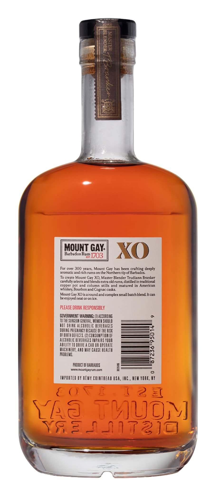Mount Gay Xo Is A Small-Batch Blend Of Carefully Selected Mature Rums Matured In Ex-American Whiskey, Bourbon And Cognac Casks. A Round And Complex Rum Best Served Neat, Xo Delivers Flavors Of Salted Caramel, Baked Fig, Clove And Dark Chocolate. • Alcohol by volume: 43% • Remy Cointreau Usa, Inc., New York, Ny. • Packaging: Reusable
