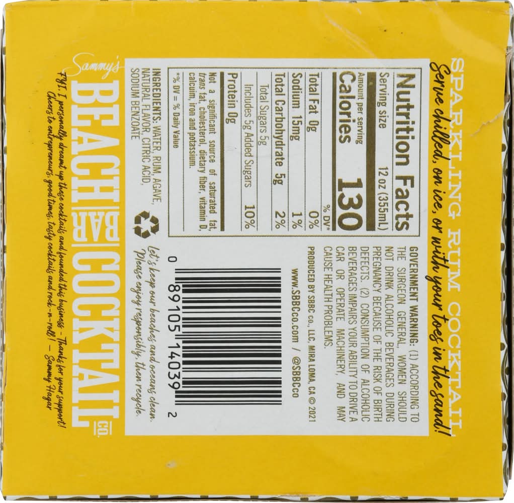 View a store’s business hours to see if it will be open late or around the time you’d like to order Sammy’s Beach Bar Cocktail Co. Sparkling Rum Cocktail.
