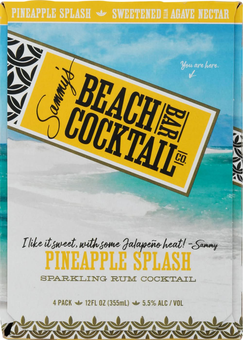 Sammy’s Beach Bar Cocktail Co. Sparkling Rum Cocktail, Pineapple Splash (4 x 12 fl oz)