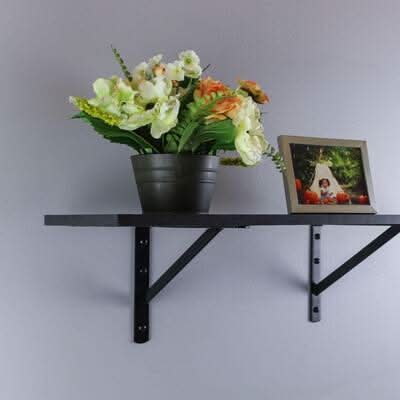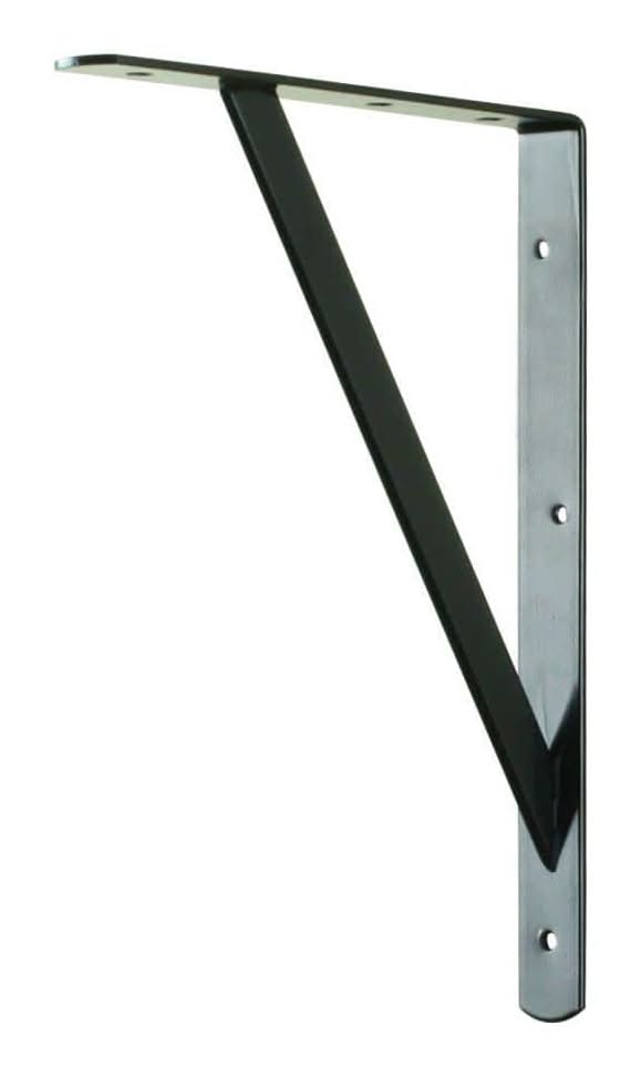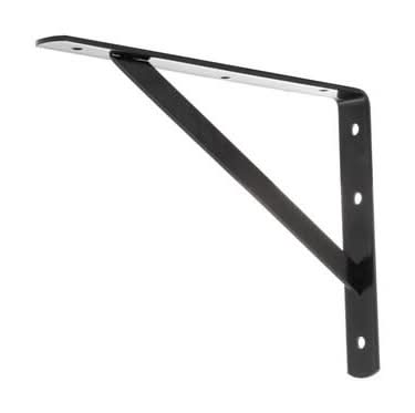 The Everbilt 12 in. x 8 in. Heavy Duty Shelf Bracket is ideal for closets, garages, sheds or any shelving needs. Compatible with wood, plastic or metal shelving. Easy to install. • Color: Black • Size: 12x8 in