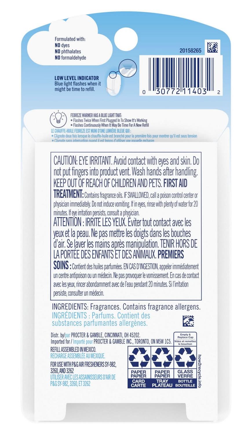 Have you experienced your plug air freshener scent fading? Good news: Febreze Fade Defy PLUG Air Freshener stays true to its name, delivering a first day fresh that lasts a full 50 days (on low setting). Ready to hit refresh and be an A+ odor fighter? Just refill the Febreze Fade Defy PLUG and plug it into any outlet (they’ll even rotate if your outlet is upside down) in any high-traffic area of your home… the kitchen, bathroom, or anywhere else odors like to linger. Bonus? When it’s time for a refill, the automatic air freshener will let you know with its handy low-level indicator light. Looking for an instant burst of fresh on funky fabrics? Give Febreze Fabric Refresher a try. Includes (1) scented oil refill for Febreze Fade Defy PLUG Air Freshener Fade Defy Technology delivers a first-day freshness that lasts 50 days (on low) Fight household odors with an air freshener perfect for bedrooms, kitchens, and hallways Continuous, automatic air freshener with digitally controlled scent release