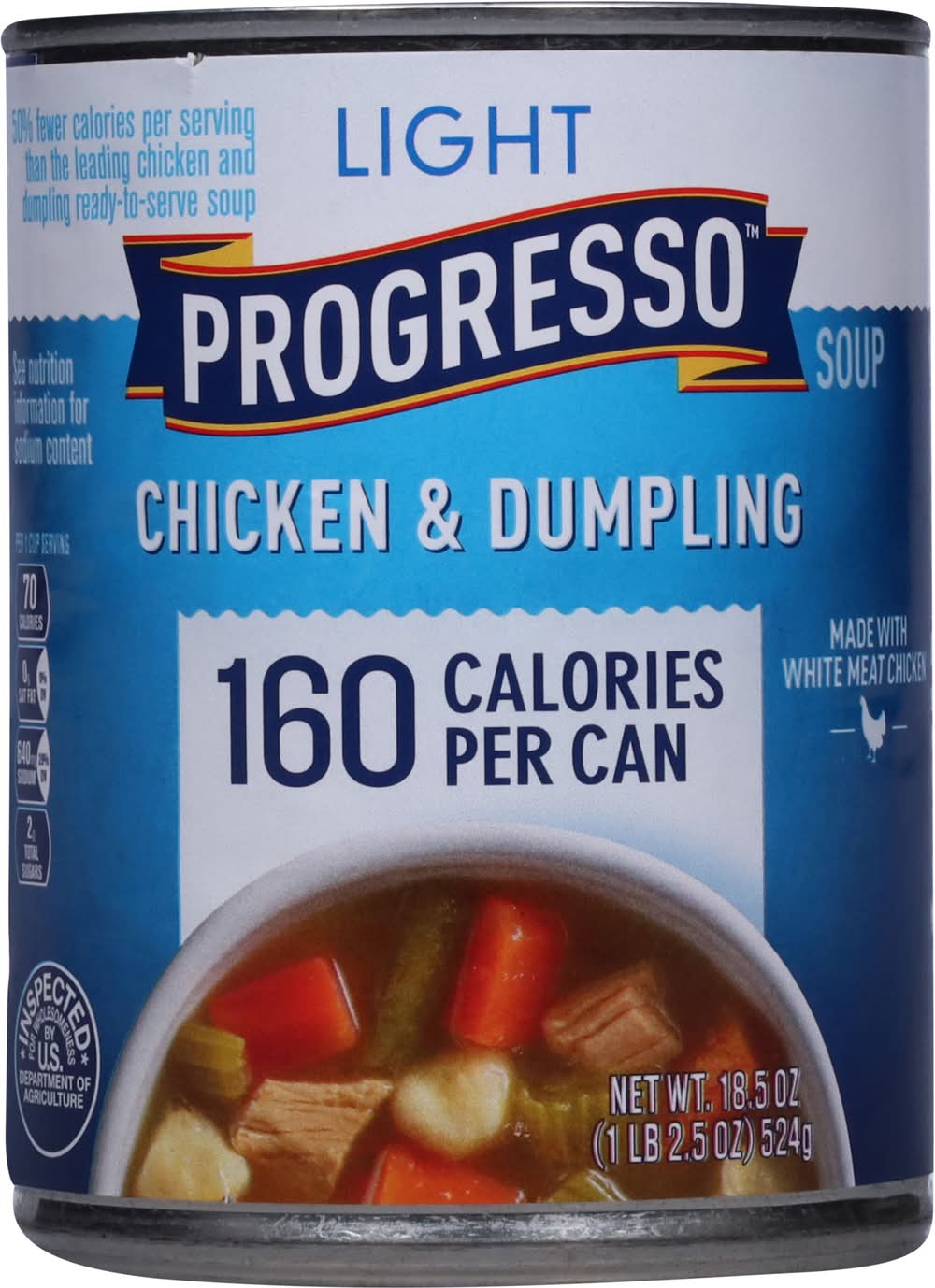 - Can I order Progresso Light Chicken & Dumpling Soup from anywhere in my city?- Your Progresso Light Chicken & Dumpling Soup delivery options may vary depending on where you are in a city. Enter your address to browse Progresso Light Chicken & Dumpling Soup delivery options near you.