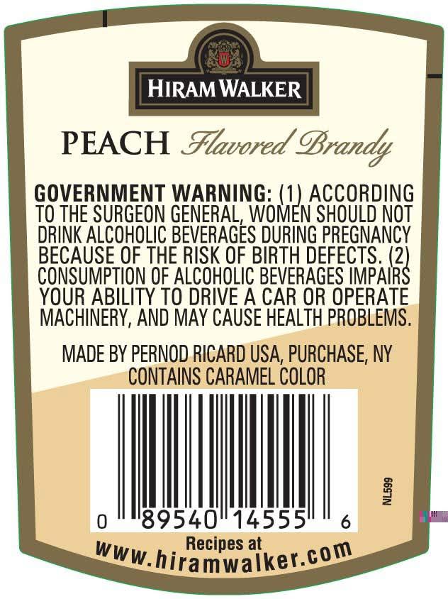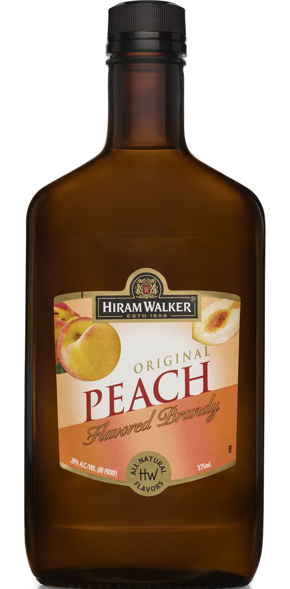 Hiram Walker Peach Brandy is a delicious blend of fine brandy spirits and delicate, sun-ripened peaches. Alcohol by volume: 30%